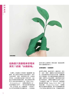 「綠」的可能性。而「永續劇場」,更成為了 場界如何實現永續發展,這也在英國繼續引導