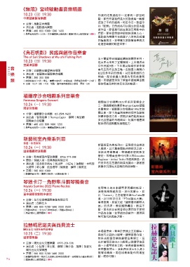 ▶ 日期:10.27(四)19:30 地點:臺中國家歌劇院小劇場 票價:500 華的情景及當時庶民生活的點滴。